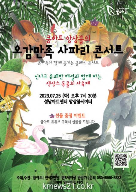 ▲ 사진=쿰아트공연 예술 단체 쿰아트(대표 한혜리)가 여름방학을 맞아 25일 성남아트센터에서 쿰아트 앙상블의 ‘오감만족 사파리 콘서트’를 선보인다.