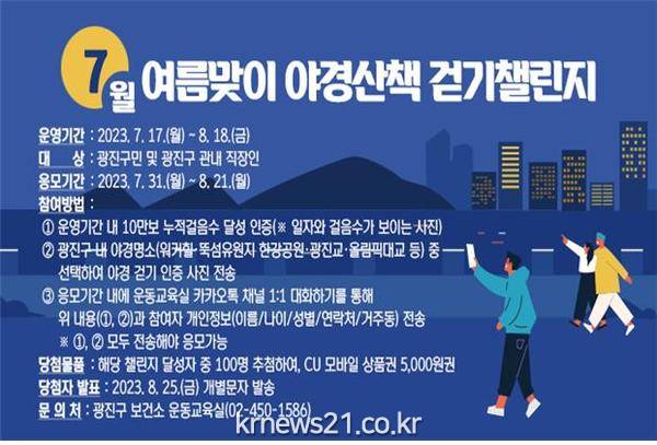 ▲ 사진=7월 여름맞이 야경산책 걷기챌린지 안내문광진구(구청장 김경호)가 오는 8월 18일까지 ‘여름맞이 야경산책 걷기챌린지’를 운영한다.
