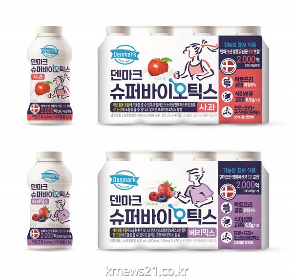 ‘덴마크 슈퍼바이오틱스’ 2종(사과, 베리믹스)의 중량은 150mL 4개입에 5980원, 8개입에 9480원이다.