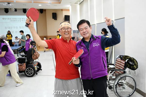 7월 27일에는 행정국 행정지원과 직원들이 동대문장애인종합복지관에서 운영하는 탁구교실 프로그램에 봉사자로 참여했다. 이 날은 이필형 동대문구청장이 직접 봉사활동 프로그램에 참여하고, 장애인과 직원들을 격려했다.