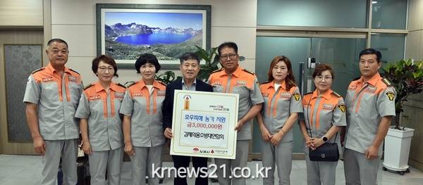 정성주 김제시장은 “봉사와 나눔을 꾸준히 실천하고 계시는 의용소방대원들에게 감사드리며, 따뜻한 마음이 담겨있는 귀한 성금을 호우피해 농가에 잘 전달하겠다.”라고 밝혔다.