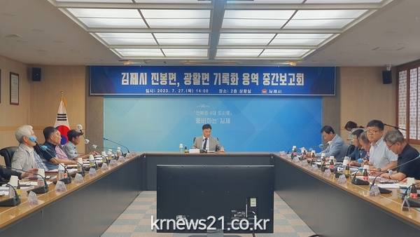 ▲  ‘김제시 진봉면, 광활면 기록화 용역’ 중간보고회 개최김제시는 27일 시청 상황실에서 ‘김제시 진봉면, 광활면 기록화 용역’ 중간보고회를 열었다.
