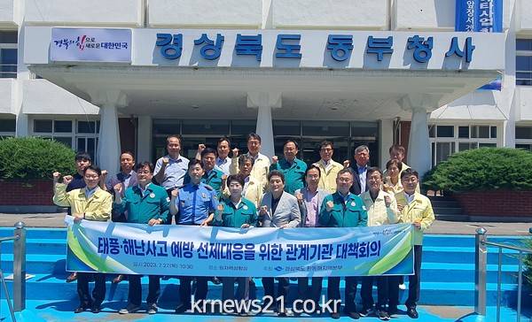 ▲ 안전한 동해안, 피해 제로(Zero) 주력!경북도는 동해안 태풍 등 자연재해와 해난사고 예방을 위해 27일 이달희 경제부지사, 연안 시군 부단체장 및 유관기관 관계자 30여 명이 참석한 가운데 ‘태풍·해난사고 예방 선제대응 관계기관 대책회의’를 개최했다.