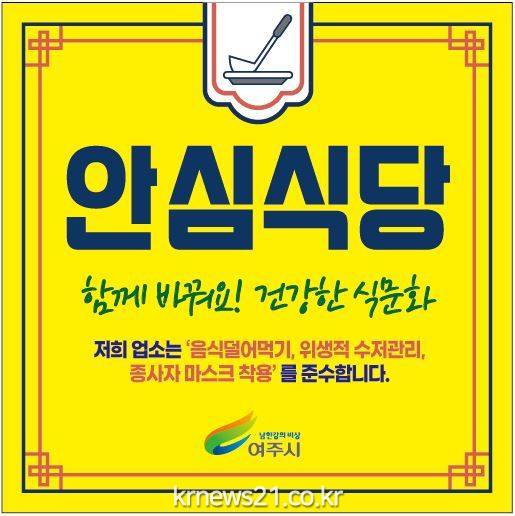 올해 여주시는 신규 안심식당 15개소 지정 목표를 달성하였으나 계속하여 참여업소를 모집하고 있으며, 2020년도부터 현재까지 60개소가 안심식당으로 지정되어 있다.