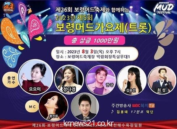 세계인이 함께하는 ‘제26회 보령머드축제’가 한창인 보령에서 관광객과 지역민이 함께 어우러질 수 있는 가요제가 연이어 펼쳐진다.