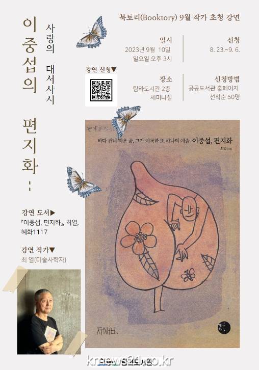 9월 북토리 테마는 ‘편지를 쓰는 마음’으로, 추천 도서 중『이중섭의 편지화』의 저자인 최열 미술사학자가 직접 강연할 예정이다.