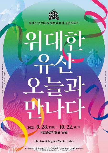 ▲ 사진=전통공연예술진흥재단전통공연예술진흥재단(이사장 김삼진)과 국립중앙박물관(관장 윤성용), 국립박물관문화재단(사장 김용삼)이 공동 주관하는 2023 유네스코 인류무형문화유산 공연 시리즈 ‘위대한 유산, 오늘과 만나다’를 9월 28일부터 10월 22일까지 국립중앙박물관 일원에서 개최한다.