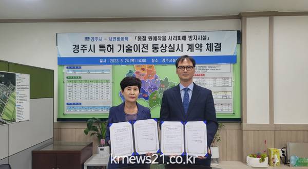주낙영 시장은 “이번 통상실시 계약 체결을 통해 농가들의 서리피해를 최소화하고 전국단위에 확대 보급돼 농가소득 증대의 모범적인 사례가 될 수 있길 기대한다”고 말했다.