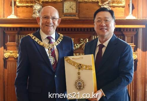 ▲ 사진=대전광역시이장우 대전시장은 29일 영국 에든버러 마지막 일정으로 로버트 앨드리지(Robert Aldridge) 에든버러 시장을 예방하고, 향후 문화와 과학 분야의 교류 협력을 강화하자고 제안했다.