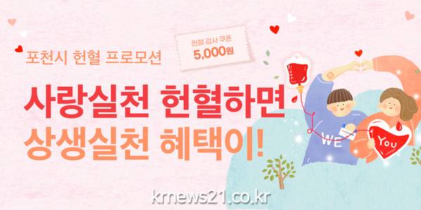 ○ 제공부서: 감염병관리과 의약무관리팀 명현아 ☎031)538-4059 ○ 사진있음: 포천시, 헌혈 활성화를 위한 ‘공공배달앱(배달특급) 쿠폰’ 지급
