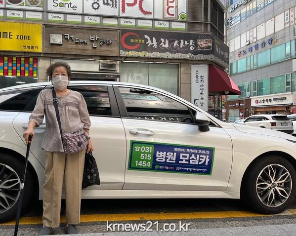 ▲ 사진=남양주시남양주시 사회복지관 서부희망케어센터(센터장 김기수)는 지역사회 통합돌봄사업의 하나로 거동 불편 어르신을 위한 이동지원‘병원모심카’사업을 시행하고 있다.