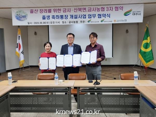 ▲ 사진=여주시여주시 산북면(면장 한지연)은 6일 2023년 산북면과 금사농협이 함께 하는 출생 축하 통장 개설 사업 업무협약을 체결했다.