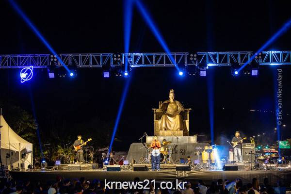 ▲ 사진=사운드퍼즐9월 1일부터 3일까지 3일간 광화문에서 ‘서울뮤직위크 2023(Seoul Music Week 2023)’이 열렸다. 3일의 행사 기간 중 사운드퍼즐 (SOUNDPUZZLE)의 싱어송라이터 오헬렌은 9월 2일 밤 세종대왕상을 배경으로 하는 광화문 스테이지의 마지막 무대에 올랐다.