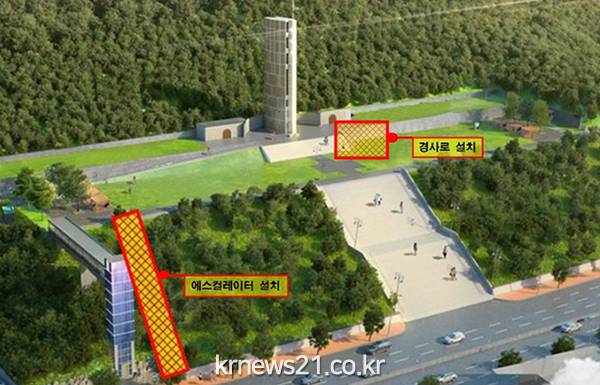 ▲ 사진=대구광역시대구광역시는 충혼탑 참배 등 이용객의 이동 편의 증진을 위해 에스컬레이터 및 참배계단 옆 경사로를 설치할 계획이다.