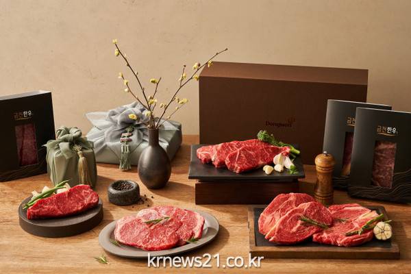 120만원대 프리미엄 한우 선물세트도 마련됐다. ‘동원 한우 시그니처 넘버나인’은 한우 암소 1++등급, 마블링(근내 지방도) 스코어 9로 구성된 프리미엄 선물세트로, 인기 부위인 꽃등심, 살치살, 안심, 채끝살과 특수 부위인 치마살, 업진살이 각각 500g씩 담겼다.