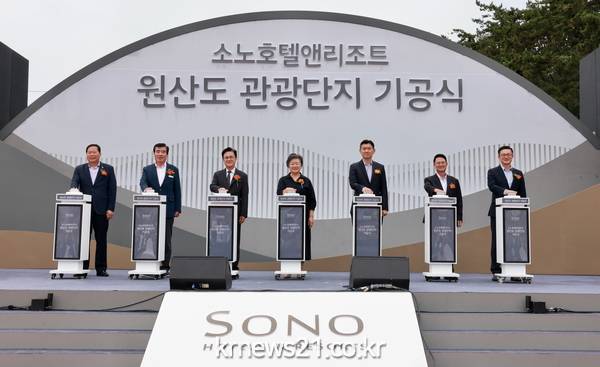 보령시는 15일 오천면 원산도리 오봉산해수욕장 일원에서 소노인터내셔널이 해양레저 대표 관광도시 보령시의 랜드마크로 거듭날 ‘소노호텔앤리조트 원산도 관광단지 기공식’을 개최했다고 밝혔다.