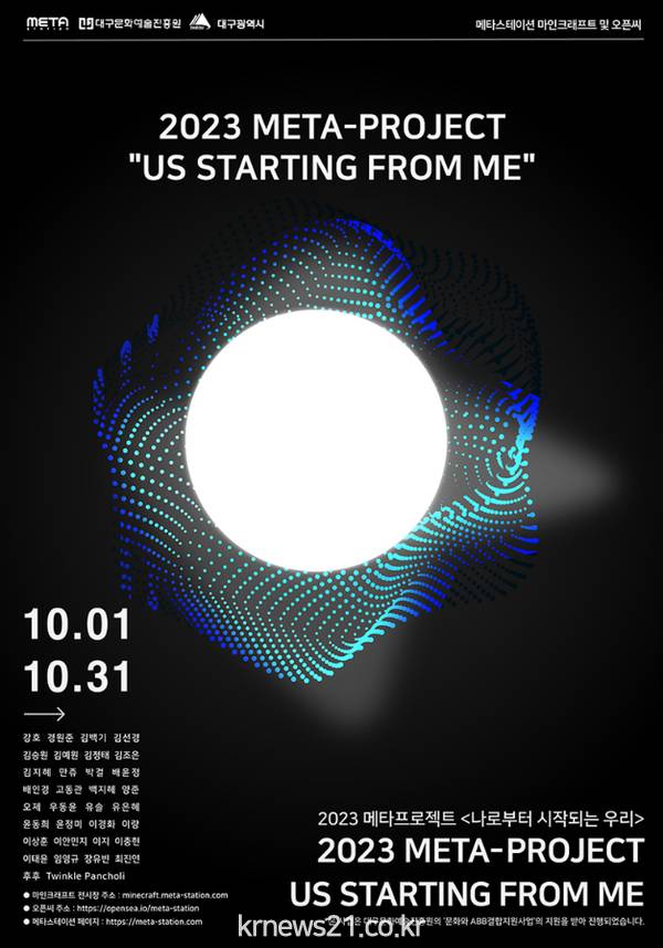 ▲ 사진=대구광역시대구문화예술진흥원(이하 ‘문예진흥원’)은 2023 문화와 ABB 결합지원(기술융합 작품제작지원사업) NFT형으로 선정된 메타스테이션 메타융합예술연구소(이하 메타스테이션)의 메타프로젝트 ‘나로부터 시작되는 우리’를 10월 1일(일)부터 10월 31일(화)까지 메타버스 플랫폼에서 진행한다.