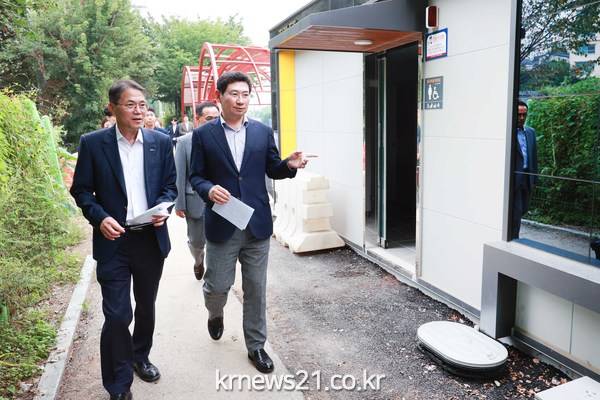 이 시장은 이어 탄천 산책로의 화장실과 쉼터 조성 공사 현장을 방문했다.