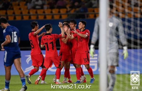 전반 19분 조영욱이 강력한 슈팅으로 추가골까지 뽑아내며 초반 흐름을 완전히 가져온 대표팀은 와일드카드로 나선 주장 백승호마저 득점 행진에 가세하며 쿠웨이트의 평정심을 완전히 무너뜨렸다.