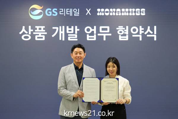 GS리테일과 모남희는 21일 강남구 역삼동에 위치한 GS리테일 본사에서 ‘GS리테일 X 모남희 차별화 상품 개발 업무’를 위한 협약을 체결했다. 협약식에는 이기철 GS리테일 기획MD부문장(상무)과 최현정 모남희 대표 등 양사 관계자가 참석했다.