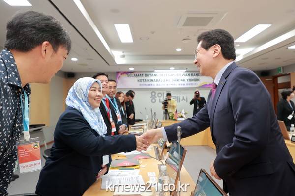 이상일 용인특례시장이 22일 말레이시아 코타키나발루시 누를리자 아왕 알립(Noorliza Awang Alip) 시장 등 19명의 대표단을 맞았다.
