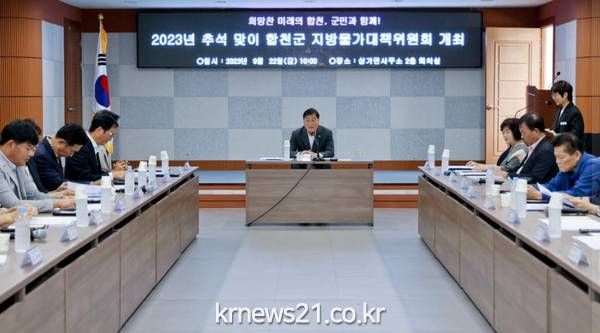 ▲ 사진=합천군합천군(군수 김윤철)은 추석 명절을 맞이해 22일 삼가면사무소 2층에서 유관기관, 단체 관계자 등 30여명이 참석한 가운데 ‘2023년 추석 명절맞이 합천군 지방물가대책위원회’를 개최했다.