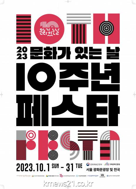 ▲  사진=지역문화진흥원문화체육관광부(장관 박보균, 이하 문체부)가 주최하고 지역문화진흥원(원장 차재근, 이하 진흥원)과 8개 협력기관*이 주관·협력하는 ‘2023 문화가 있는 날 10주년 페스타’가 문화의 달인 10월 한 달간(10.1.~31.) 서울 광화문광장 일대 및 전국 각지에서 개최된다.