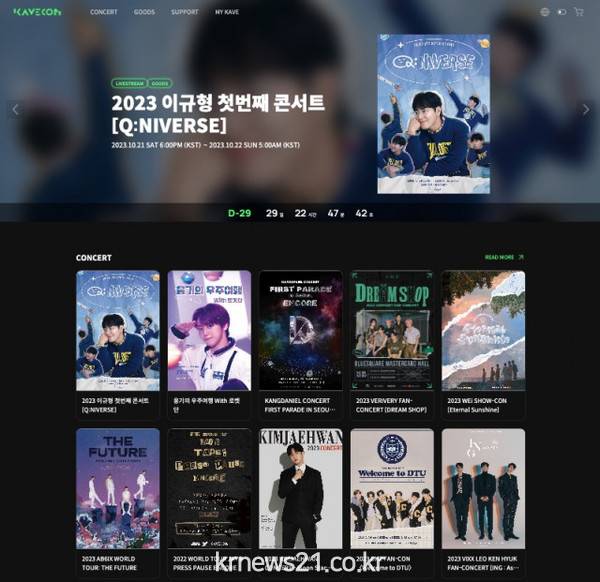 신규 비즈니스 중 굿즈 기능은 이미 국내는 물론 해외까지 배송이 가능하도록 KAVECON(케이브콘)에 적용돼 올해 10월 21일, 22일에 걸쳐 개최되는 2023 이규형 첫 번째 콘서트 ‘Q:NIVERSE’의 굿즈를 현장 수령 가능하도록 제작사와 협업, 상품을 개시했으며 라이브 스트리밍 상품 또한 많은 관심과 함께 판매 중이다.