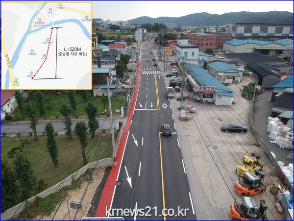구는 예산을 확보하고 지난 3월부터 공사를 시작해 통행량이 많은 천리 방향 도로 SK승원주유소부터 제1천리교 앞까지 약 520m 구간을 차선 조정과 전신주 등 지장물을 이설해 편도 1차로에서 2차로로 확장했다.
