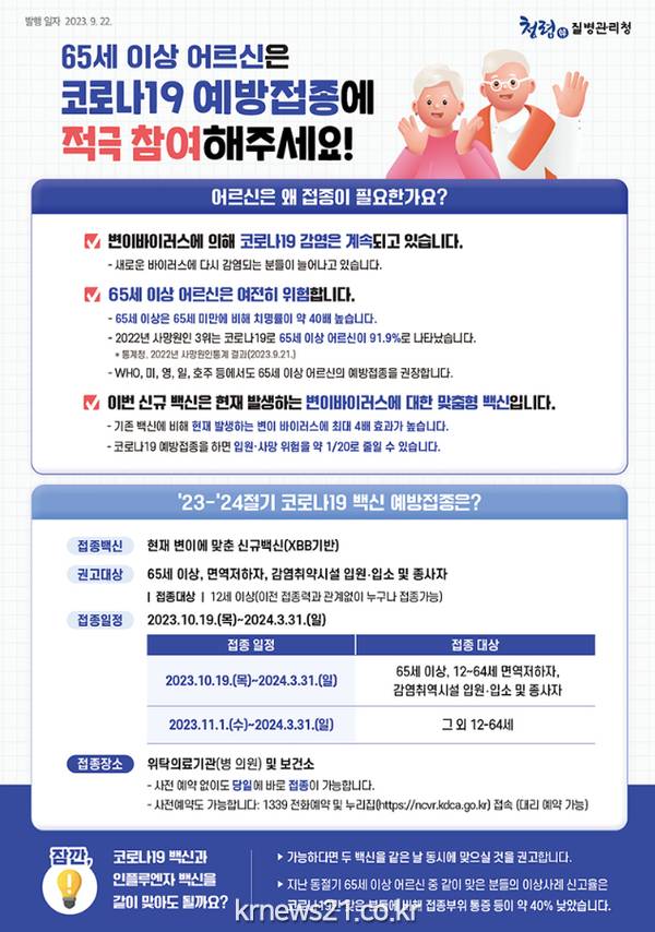 대구광역시는 오는 19일부터 2023-2024절기 코로나19 예방접종을 실시한다.