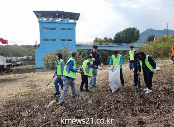 ▲ 사진=대전광역시대전 상수도사업본부 수질관리과는 14일 상수원 보호와 수질개선을 위해 ‘대청호 추동 취수탑 및 인공습지 주변 환경정화 활동’을 실시했다.