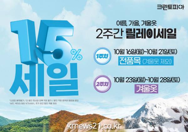 ▲ 사진=크린토피아세탁 전문 기업 크린토피아가 가을 옷장 정리 시즌을 맞아 10월 16일(월)부터 2주간 ‘가을 릴레이 세일’을 진행한다.