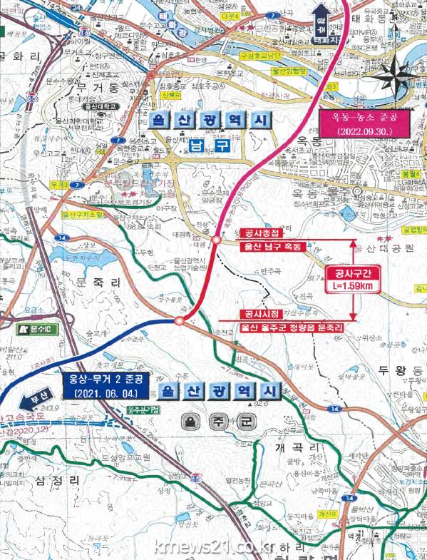 울주군 청량읍 문죽리와 남구 옥동을 연결하는 도로로 총 연장 1.6km, 왕복 4차로 규모로 조성됐다.