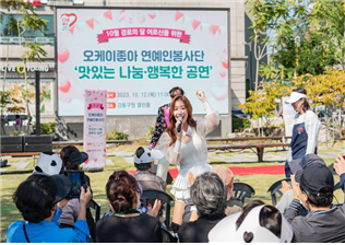 ▲ 사진=강동구지난 12일, 강동구청 앞 열린뜰에서는 가수들의 신나는 공연과 함께 따뜻한 곰탕 나눔 행사가 진행되었다. ‘오케이좋아 연예인 봉사단’에서 어르신 350여 명을 초청해 소고기 곰탕을 대접한 것이다. ‘오케이좋아 연예인 봉사단’은 KBS 드라마 ‘신사와 아가씨’, ‘비밀의 여자’ 등을 연출한 신창석 피디(PD)를 중심으로 연기자와 가수 등이 참여해 결성된 봉사단이다.