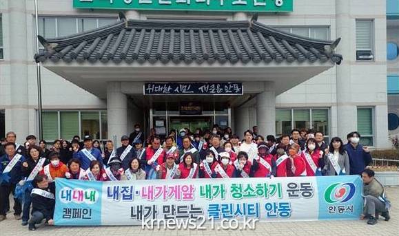 ▲ https://www.andong.go.kr/안동시 홈페이지지역주민과 공무원 등 약 100여 명이 18일 안기동 일대에서 ‘내내내 캠페인(내집·내가게 앞·내가 청소하기)’을 진행했다.
