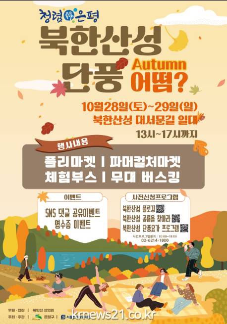 ▲ 사진=은평구서울 은평구(구청장 김미경)는 오는 28~29일 북한산성 입구(대서문길 상권)’서 골목상권 활성화를 위한 ‘북한산성 단풍 어떰(Autumn)?’을 개최한다고 밝혔다.