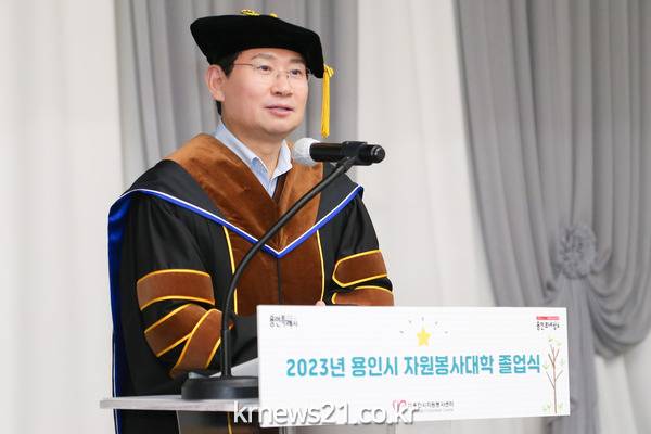 이날 졸업식에는 용인시 자원봉사대학 총장인 이 시장을 비롯해 학장인 백숙희 용인시자원봉사센터장, 수료생 등이 함께 했다.
