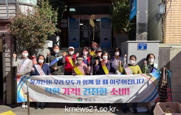 ▲ https://www.yangsan.go.kr/양산시양산시 웅상출장소는 최근 물가가 급등함에 따라 한국여성소비자연합 양산지부, 물가모니터요원, 공무원 등 10여명이 참여한 가운데 서창시장에서 물가안정 캠페인을 실시했다.