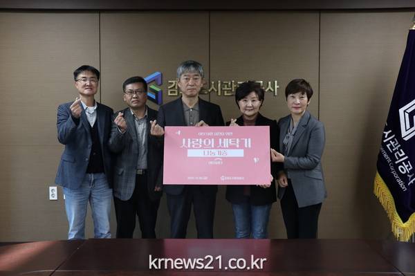 김포도시관리공사(사장 이형록, 이하 공사)가 지난 20일 ‘햇살나무’에 세탁기를 기증했다고 밝혔다. 공사에서 진행한 기증식에는 햇살나무 소장과 여성가족과 여성정책팀장 등 관계자들이 참석했다.