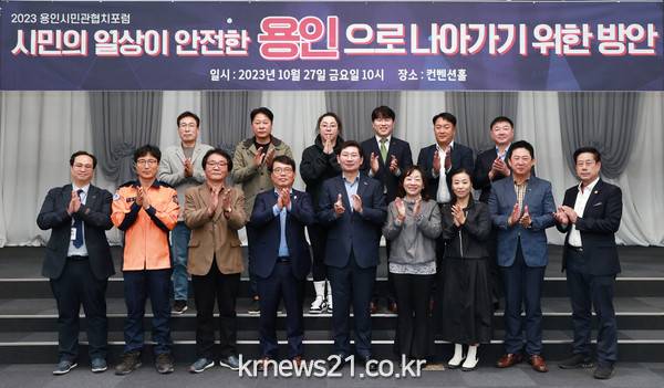 ▲ 사진=용인시용인특례시(시장 이상일)는 27일 시청 컨벤션홀에서 시민 안전 의식을 고취하고 재난관리 개선 방안 모색이 필요하다는 인식에 대한 공감대 형성을 위해 ‘2023년 제1차 용인시 민관 협치 포럼’을 열었다.