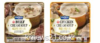 먼저, ‘프레스코 치킨 크림스프’는 진한 닭고기 육수와 우유를 넣은 베이스에 닭고기, 샐러리, 바질, 로즈마리, 화이트와인 등을 넣어 깊고 풍부한 맛을 냈다. ‘프레스코 쇠고기 크림스프’는 양지 농축액과 우유가 들어간 베이스에 쇠고기를 듬뿍 넣고 후추로 감칠맛을 더했다.
