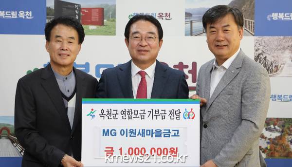 ▲ https://www.oc.go.kr/옥천군청옥천군은 30일 군수실에서 MG이원새마을금고(이사장 이재헌), 옥천군지역사회보장협의체(민간위원장 김천진, 이하 ‘협의체’) 등 총 3개 기관이 ‘옥천군 지역사회 공헌을 위한 업무협약식’을 진행했다고 밝혔다.