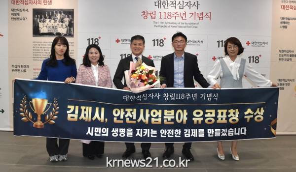 지난 27일, 전북 김제시 정성주 시장이 대한적십자사 창립118주년 기념식에서 안전사업분야 유공 표창을 수상하였다.