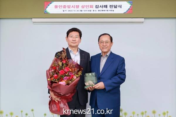 감사패에는 “아낌없는 지원과 열정으로 용인중앙시장이 젊고 활력이 넘치는 시장으로 도약할 수 있게 됨을 깊이 감사드린다”며 “‘함께 만드는 미래, 용인 르네상스’가 실현되도록 용인중앙시장 상인회 회원 모두 한마음 한뜻으로 보답하겠다는 마음을 담아 드린다”는 내용이 담겼다.
