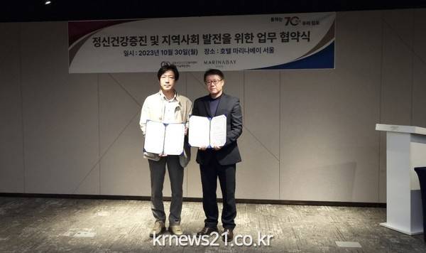 ▲ 사진=김포시김포시정신건강복지센터(센터장 박병양)가 김포시민들의 정신건강증진 및 지역사회 발전을 위해 지난 10월 30일(월) 호텔마리나베이서울과 업무협약(MOU)을 체결했다.