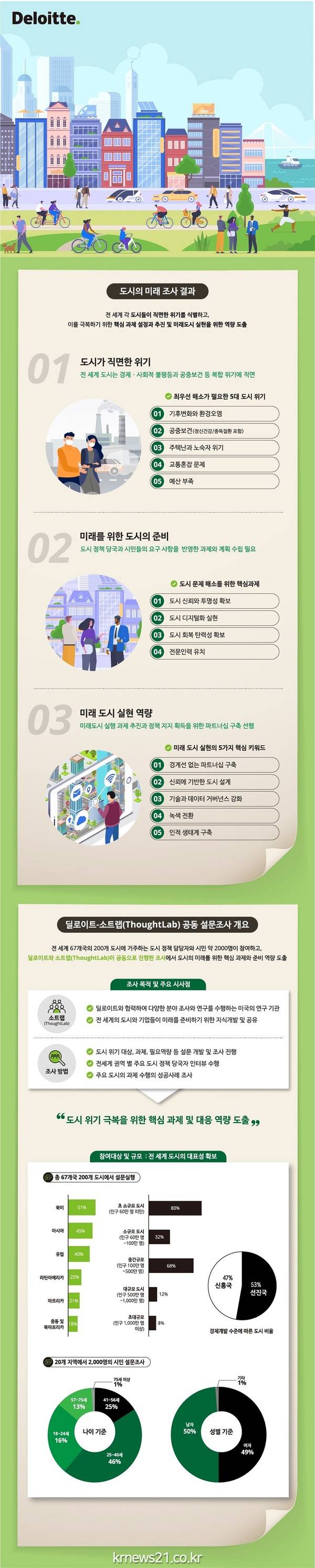한편 ‘도시의 미래를 위한 과제와 변화 역량 구축하기’ 리포트 전문은 딜로이트 홈페이지 혹은 딜로이트 인사이트 앱(iOS/Android)을 통해 확인할 수 있다.