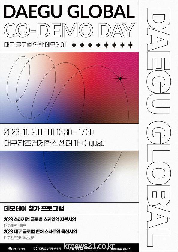 대구광역시는 플러그앤플레이사와 함께 지역 기업의 글로벌 진출을 지원하기 위해 ‘대구 글로벌 데모데이’를 오는 9일(목) 대구창조경제혁신센터 1층 C-Quad에서 개최한다.
