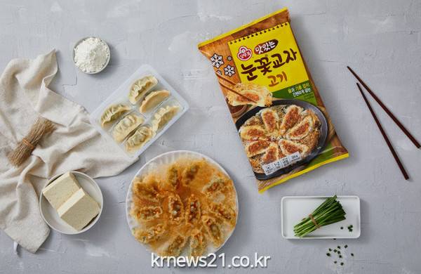 ▲ 사진=오뚜기오뚜기가 물과 기름 없이 쉽고 간편하게 구워 먹을 수 있는 ‘맛있는 눈꽃교자’를 출시했다.