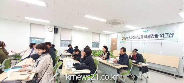 ▲ 사진=김포시김포시(시장 김병수)가 지난 11월 10일 김포시사회적경제지원센터(고촌읍)에서 관내 사회적경제기업 대표 20여명이 참석한 가운데 기업의 전문성과 경쟁력 강화를 위한 교육을 실시했다.