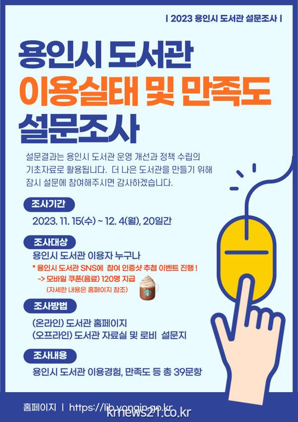 ▲ 사진=용인시청용인특례시(시장 이상일)는 시 공공도서관 이용 시민을 대상으로 도서관 이용 실태 및 만족도 조사를 한다고 16일 밝혔다.